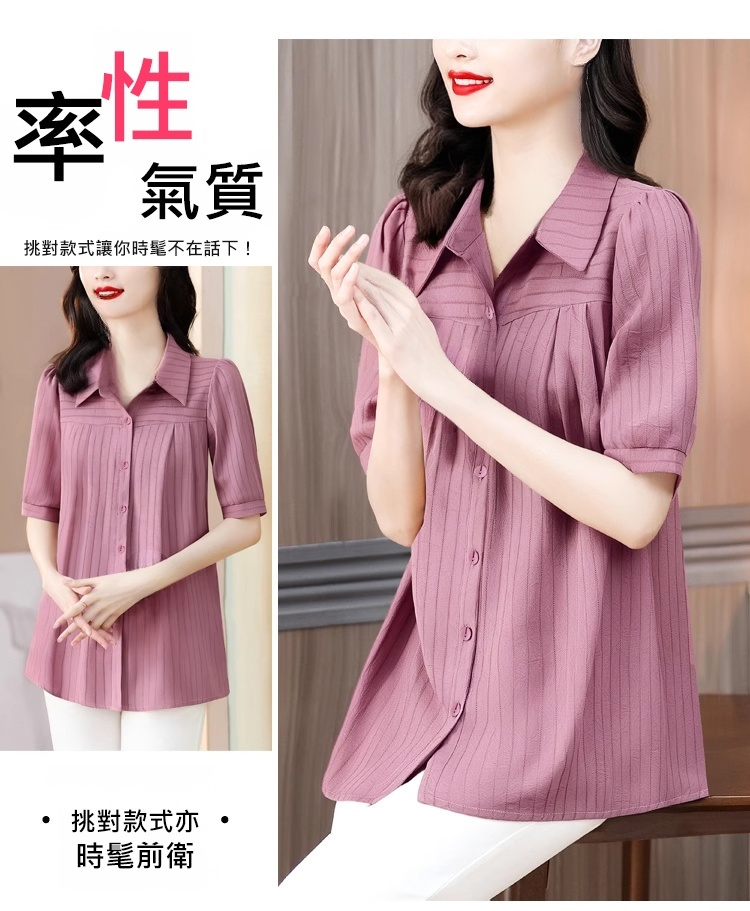 遮肉顯瘦百搭五分袖襯衣