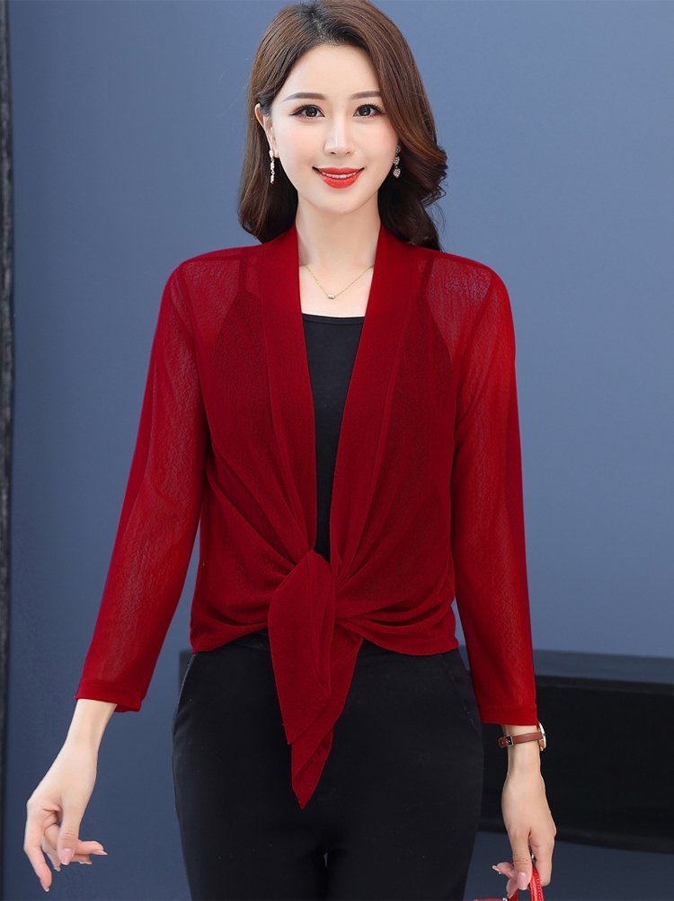 氣質女神麻紗系帶披肩開衫